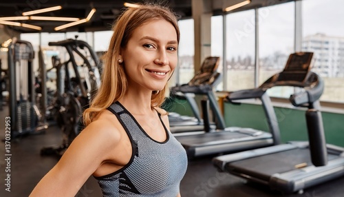 Confident fitness instructor posing in modern gym