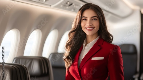 flight attendant, aircraft, cabin, professional, smiling, uniform, airline, service, travel, aviation, modern, friendly, hospitality, passenger, interior, comfort, safety, welcoming, young, woman, cheerful, customer service, journey, contemporary, stylish, warm, approachable, professionalism, air travel, smiling face, attentive