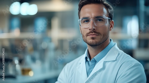 scientist, laboratory, laboratory, research, science, chemistry, biology, medicals, doctor, medical professional, health care, professional, expert, innovation, discovery, experiment, labcoat, goggles, serious, confident, sharpened, determination, male, man, portrait, face, closeup, indoor, blurred background, light, bright, white, blue, yellow, pharmaceutical, pharmaceutical, technology, breakthrough, scientific, chemical