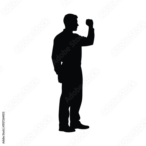 celebration, success, confident, man, silhouette, modern, business, professional, victory, achievement, happy, fist, raised, arm, standing, isolated, white, background, black, empowerment, motivation, inspiration, triumph, jubilation, joy, pride, accomplishment, person, figure, gesture, expression, emotion, strength, power, dynamic, energetic, vibrant, commercial, use, lifestyle, office, workplace