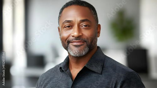 Confident mature man with a beard smiling in a casual setting.