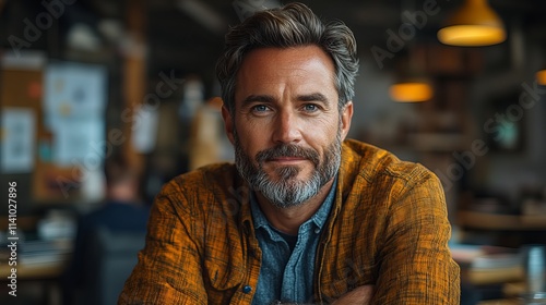 portrait, head shot, confident, serious, relaxed, thoughtful, grey hair, beard, stubble field, moustache, casual clothes, cafes, cafes, eatery, blurred background, bokeh, natural light, low light, high contrast, closeup, expression, mature, adult, masculine, gentleman, stylish, calm, determination, self-assured, strength, wisdom, life events, professional, businessman, entrepreneur, leadership, achiever, success, contentment, serenity, pensive