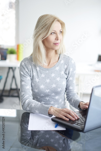 portrait, business, businesswoman, woman, woman, computer, laptop, working, office, mature, professional occupation, adviser, financial, assistant, attractive, looking, executive, confident, investment, job, corporate, people, person, paperwork, sitting, desk, communication, blond, ceo, 40s, 50s, thinking
