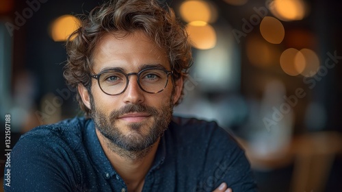 Confident Startup Founder Portrait in Modern Workspace with Soft Bokeh Background