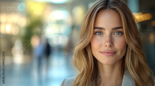 woman, female, portrait, face, smiling, happy, confident, beautiful, attractive, blond, blue eye, young, adult, casual attire, professional, business, office, workplace, corporate, success, positive, model, fashion, style, make-up, skin, hair, head shot, closeup, natural light, bokeh, background, blur
