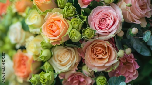 Congratulatory and Festive Bouquet of Pink and Peach Roses with Green and Yellow Accent