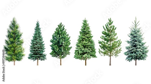 Conifer Trees collection of green Christmas trees on a white background isolated