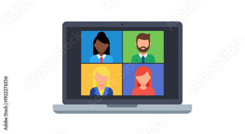 Connecting Teams Virtually A Flat Vector Illustration of an Online Video Conference Meeting on a Laptop Screen