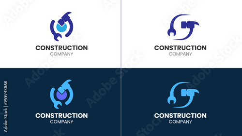 Construction Company Logo Design Set, Wrench and Hammer Icon logos, Modern Construction Logo, Repair logo.