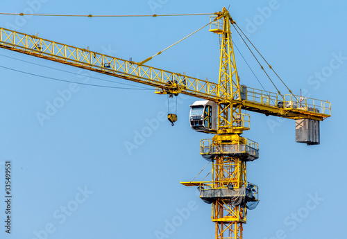 architecture, building, construction, crane, blue, building exterior, development, elevating, equipment, high, industry, mechanical, site, sky, structure, sunny, tall, tower, view, work, yellow