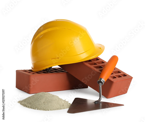 architecture, background, brick, bucket, build, builder, building, business, cement, construction, bricolage, engineer, engineering, equipment, hard, hard hat, hat, helmet, improvement, industrial, industry, instrument, isolated, item, job, maintenance, material, material, object, occupation, professional, protective, reconstruction, red, refurbish, refurbishment, renewal, renovation, repair, safe, safety, service, supply, tool, trowel, white, work, workshop, yellow