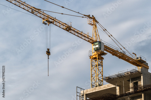 crane, building site, apartment building, architecture, background, below, build, building, built, business, city, complex, concrete, construction, design, development, downtown, empty, equipment, exterior, facades, frame, framework, grid, high, horizontal, house, housing, incomplete, industrial, industry, infrastructure, machine, metal, modern, new, nobody, business building, outdoors, progress, real, scaffolding, site, sky, skyscraper, steel, structure, technology, town, unfinished, urban, work, workplace, yellow, copy space, construction site