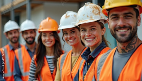 construction, team, smiling, men at work, safety, helmet, work, collaboration, diverse, male, female, happiness, community, industry, teamwork, positive, joyful, profession, oneness, builder, engaged, project, camaraderie, construction site, young adult, manual labor, friendly, organised, safety-gear, motivation, effort, cooperation, manpower, professional, individual