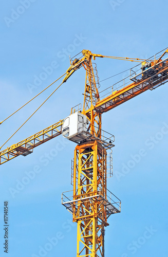 crane, mobile, tall, tower, balance, build, building, construction, hook, engineering, equipment, development, industrial, industry, load, machine, site, steel, structure, lift, blue, sky, built, business, cable, transportation, up, vertical, architecture, girder, hoisting, loader, loading, lifting, machinery, cabin, workplace, mover, pillar, technology, tower block, urban, yellow, winch