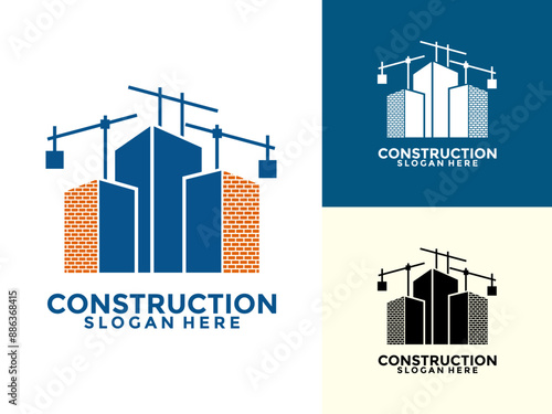 Construction with brick and building logo vector template
