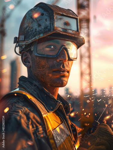 construction, men at work, dusk, evening, spark, building, site, helmet, safety, gear, protective, goggles, urban, development, industry, hard hat, manual, labor, steel, structure, skyscraper, welding, worksite, construction worker, construction site, industrial, architecture, construction equipment, man, male, blue-collar, detailed, scenery, sunset, tough, dedicated, sharpened, determined, effort, tool, power, machinery, build, crane, skyline, city, job