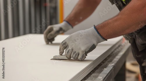 construction, men at work, hand, glove, work, labor, manufacturing, industry, factory, job, task, process, material, building, shopkeeper, craftsman, skilled, precision, detail, careful, meticulous, white, surface, tool, equipment, grey, dust, grit, closeup, professional, trade, artisan, expert, manual, production, industrial, workshop, effort, sharpened, concentrated