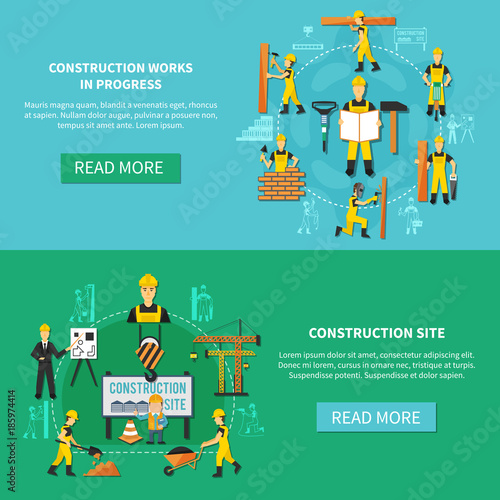 Construction Worker Flat Banner Set