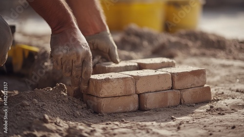 construction, men at work, laying, brick, site, sharpened, precision, bricklaying, technique, home, improvement, optical, hand, arrange, mortar, tool