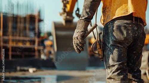 Construction worker operating a concrete pump. Featuring skill and precision