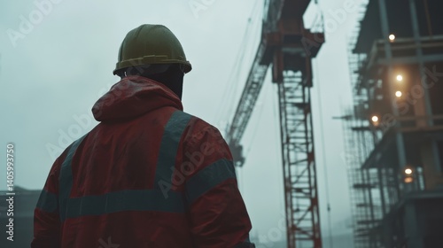 Construction worker operating a crane on a building site. Featuring strength and coordination
