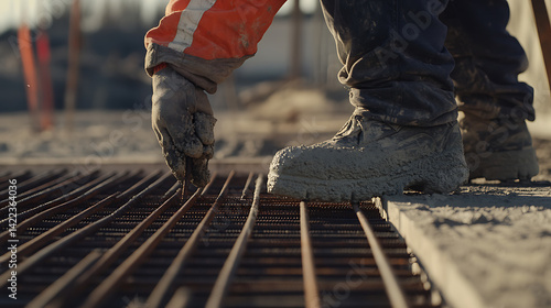 construction worker, rebar, concrete, site, work boot, glove, safety-gear, building, construction, industry, labor, men at work, preparation, framework