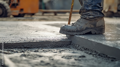construction, men at work, concrete, smoothing, boot, tool, worksite, industrial, labor, building, development