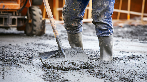 construction, men at work, concrete, smoothing, shovel, boot, site, work, industrial, building, development, labor, material, wet, ground, tool