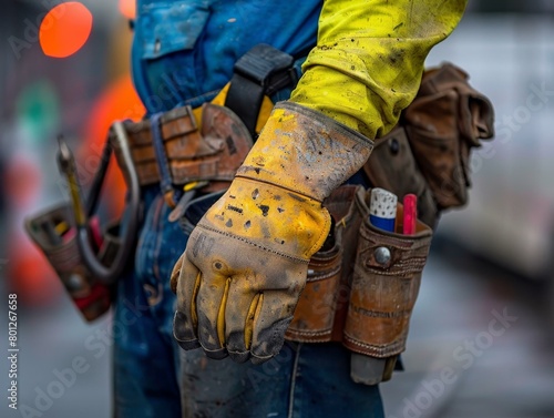 construction worker, tool belt, glove, safety, work, labor, building, repair, maintenance, blue-collar, hard hat, boot, ladder, scaffolding, concrete, wood, metal, tool, hammer, saw, drill, wrench, screwdriver, plier, nail, screw, bolt, nut, washer, danger, risk, injury, accident, death, protection