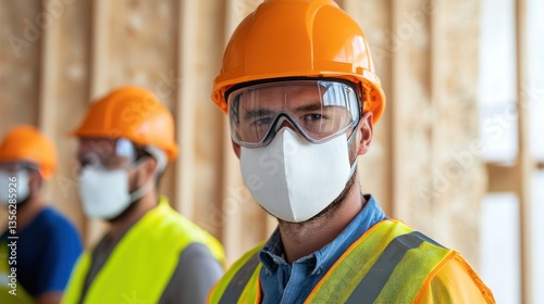 Construction workers installing insulation in modern building on-site project indoor environment safety focus