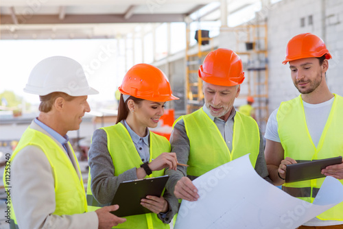 plan, drawing, construction, plan, architect, apprentice, people, together, talk, background, woman, businesswoman, male, female, man, 4, helmet, building, digital, tablet, wearable, technology, design, architecture, content, businessman, white, smile, happy, racked, paper, look, men at work, builder, industry, safety, person, meeting, factory, pretty, hard hat, discussion