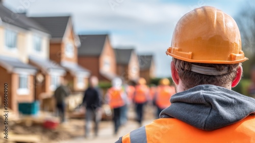 construction, new, housing, development, site, safety, progress, men at work, building, hard hat, vest, uniform, orange, construction site, real estate, property, industry, engineer, architect, inspection, supervisor, foreman, teamwork, residential, house, urban, planning, infrastructure, project, management, survey, job, occupation, career, expertise, skilled, labor, work, man, group