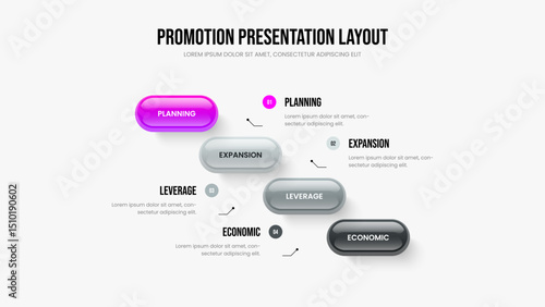 Consulting Forecast 4 Element Diagram Presentation Template. Company Plan Four Step Infographic Frame Layout. Investor Proposal Slideshow Design Vector Illustration.