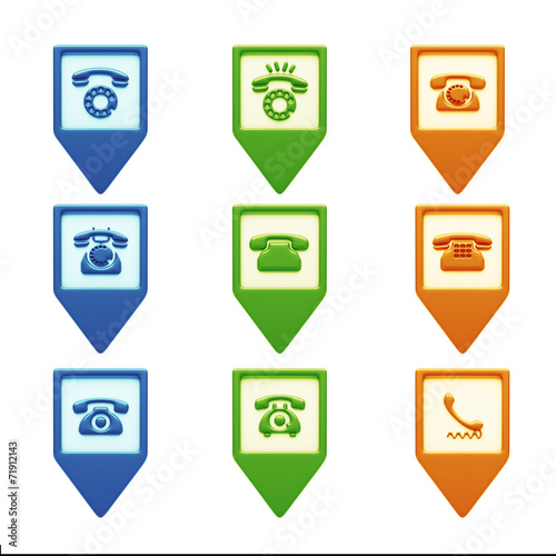 three-dimensional, call, mobile phone, colours, colourful, communication, connection, contact, please get in touch, contacting, device, handset, icon, cyberspace, isolated, marker, message, mobile, online, phone, pin, render, signs, square, symbol, phone, white