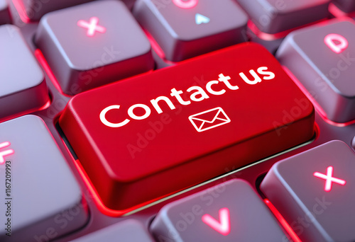 Contact Us Button, Blue Keyboard Key, Online Contact, Email Icon on Keyboard, Reach Us, Contact Key Close-up