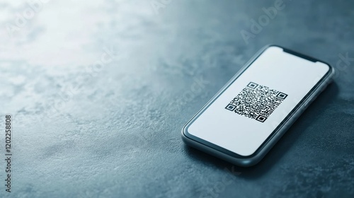 Contactless Payment Concept Visualized with Smartphone and QR Code on Textured Surface