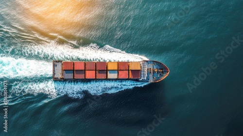 Container Ship Sailing on the Ocean: Aerial View of Cargo Transportation and Global Trade