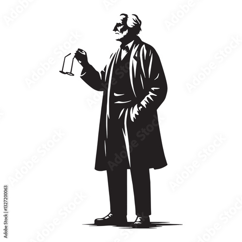 Contemplative Gaze Old Man Holding Glasses silhouette, searching for meaning - Old Man illustration - Minimalist Old Man vector - Thoughtful mind