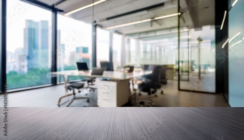 contemporary blurred office interior n glass wall workspace for presentation or digital use