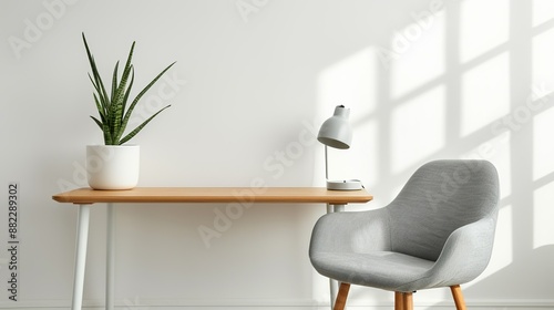 Contemporary home office with a sleek desk, simple chair, and uncluttered workspace emphasizing productivity and calm in a minimalist and stylish setting High Resolution picture, , Minimalism,