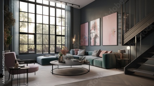 Contemporary interior design room with beautiful lightning generative ai