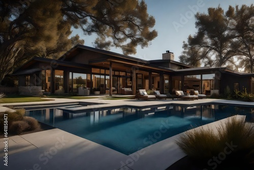 Contemporary ranch-style house with a single-story layout and an open floor plan - AI Generative