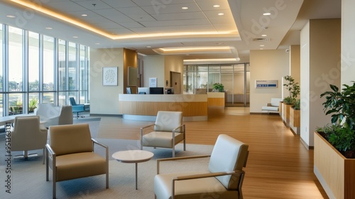 Contemporary waiting area in a doctor's office, featuring soft lighting, plush chairs, and a welcoming atmosphere, emphasizing patient-centric design.