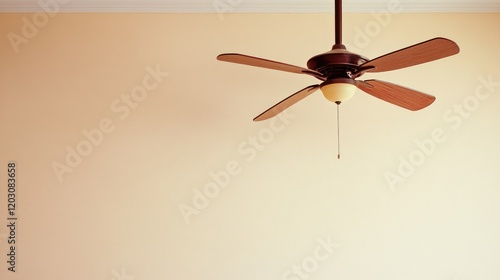 Contemporary wall fan with minimalist features, attached to a neutral beige background