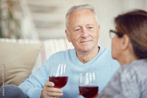 woman, man, smiling, people, togetherness, indoor, lifestyle, husband, wife, happiness, love, wine, cheerful, married, looking, sitting, retirement, bonding, casual clothes, wine glass, relaxation, affectionate, home interior, enjoyment, romance, alcohol, drinking, drink, holding, february 14, celebration, holiday, dating