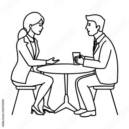continuous, line, art, drawing, business, man, professional, suit, office, work, vector, illustration, employee, executive, corporate, meeting, flat, vignetting, minimal, leader, manager, attaching, company, person, boss, job, staff, talk, formal, career, woman, people, cartoon, couple, computer, sitting, chair, love, table, laptop, eatery, bench, boy, talking, working, businessman, lifestyle, 2, desk