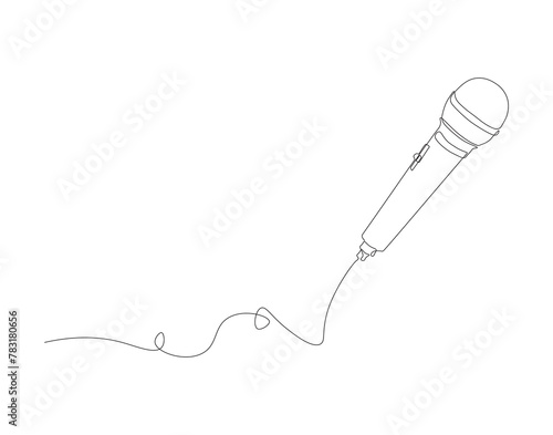 Continuous line drawing of wired microphone. One line of mic drawing. Music instrument concept continuous line art. Editable outline.