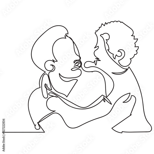 Continuous line drawing vector illustration. Father with son in his arms silhouette. Vector illustration