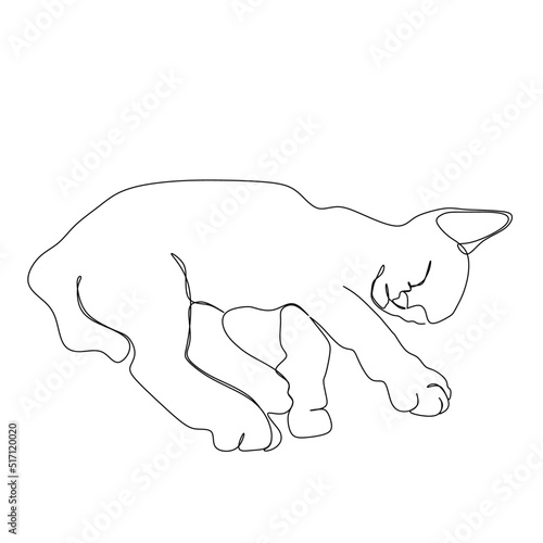 Continuous one line drawing of cat silhouette. Peaceful face sleeping cat in abstract hand drawn style. Animal themed simple ink vector illustration. Simple and minimalist animal doodle art.