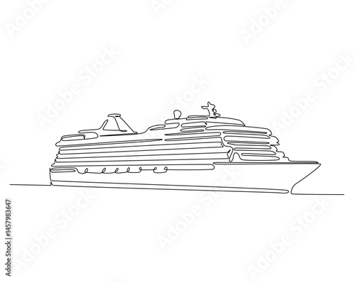 Continuous one line drawing of sailing cruise ship. Cruise ship in simple outline illustration. Editable line vector